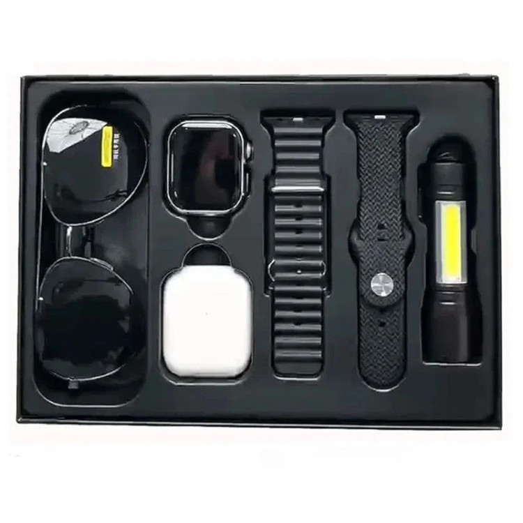 شارژر، دفترچه راهنما، کابل شارژر وایرلس، یک عدد عینک آفتابی، یک جفت ایرباد درون باکس جداگانه، یک عدد چراغ قوه، ۲ عدد بند